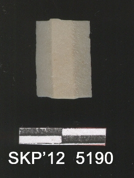 | Description / विवरण | This is a chert blade fragment, broken ends with trapezium cross section, flaked ridges, and sharp margins. |