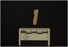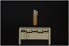 | Description / विवरण | An Agate blade has ridges on dorsal side, striking platform, bulb on ventral side and use-wear marks on cutting edges. |