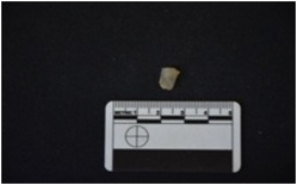 | Description / विवरण | Chalcedony blade fragment has a ridge on dorsal side, striking platform, bulb with errailure on ventral side, broken from distal end and use-wear marks on one cutting edge. |