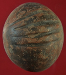 | Description / विवरण | Trench XQ-1, Qdt I, layer 1 depth 48 cms This is a ball made of terracotta. Half portion of the ball is broken. There is horizontal line design on it. Surface is rough. Shape is almost round. Colour of object is brick brown. |