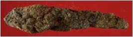 | Description / विवरण | Trench XAT 19, Qdt 1, layer 12A, depth 425-435 cm It is an arrow head made of iron. It is curved a little. Broken and corroded. |