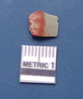 | Description / विवरण | It is a blade fragment. The ridges are clearly seen on the dorsal surface while the ventral surface is plain. It is reddish grey in colour. The sides are sharp and it is triangular in cross - section. |