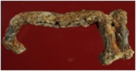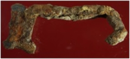| Description / विवरण | Trench XC 8, Qdt 3, layer 8, depth 365 cm It is an iron clamp, partialy broken. Badly deformed and corroded. |