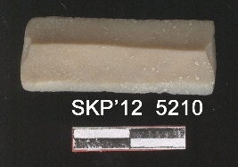 | Description / विवरण | This is a chert blade fragment, a rectangular shape with both broken end if trapezium cross section, two flaked ridges on the dorsal side. Use wear marks visible. |