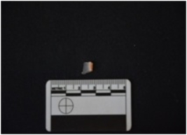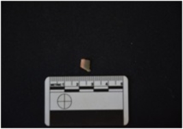 | Description / विवरण | Chalcedony blade fragment has a ridge on dorsal side, broken from both ends, use-wear marks on one cutting edge and raw-material given heat treatment. |