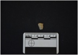 | Description / विवरण | Chalcedony blade fragment has a midridge on dorsal side, striking platform broken from distal end and use-wear marks on cutting edges. |
