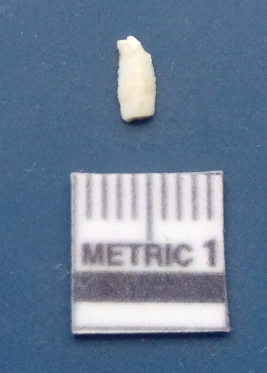| Description / विवरण | It is a blade fragment. The ridges are clearly seen on the dorsal surface while the ventral surface is plain. It is white in colour. The sides are sharp and it is triangular in cross - section. |