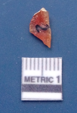 | Description / विवरण | It is a blade fragment. The ridges are clearly seen on the dorsal surface while the ventral surface is plain. It is orangish in colour. The sides are sharp. |