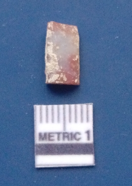 | Description / विवरण | It is a blade fragment. The ridges are clearly seen on the dorsal surface while the ventral surface is plain. It is reddish white in colour. The sides are sharp. The soil incrustations are clearly seen. |