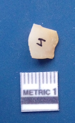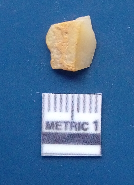 | Description / विवरण | It is a blade fragment. The ridges are clearly seen on the dorsal surface while the ventral surface is plain. It is creamish white in colour. The sides are sharp. It is triangular in cross - section. |