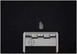 | Description / विवरण | Chalcedony utilized flake has ridges and flake scars on dorsal side, striking platform, bulb on ventral side and use-wear marks on working edges. |