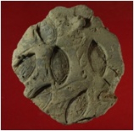 | Description / विवरण | Trench XF 2, Qdt 3, Stratum layer 12, Depth 815cms It s a clay disc. Having many leaved shaped stamp impression on the obverse. On the reverse side is made a human figurine roughly. Only indicating the out lines of body. |