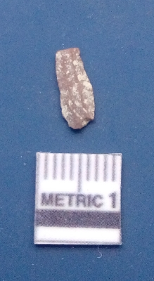 | Description / विवरण | It is a blade fragment. The ridges are clearly seen on the dorsal surface while the ventral surface is plain. It is rownish in colour. The sides are sharp and is triangular in cross - section. |