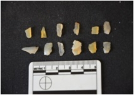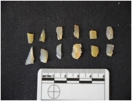 | Description / विवरण | Fragments of Blade, made on chalcedony, All of them have ridges on the dorsal surface, sharp working edges. Some of them have bulb on the ventral surface. |