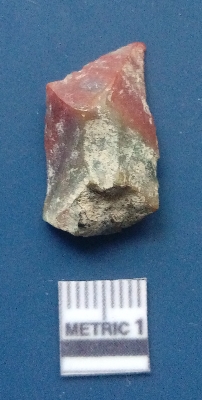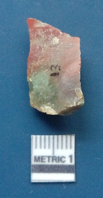 | Description / विवरण | It is a blade fragment. The ridges are clearly seen on the dorsal surface while the ventral surface is plain. It is reddish in colour. The sides are sharp and retouched. The striking platform and the bulb of percussion is clearly visible on the surface. |