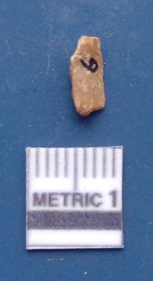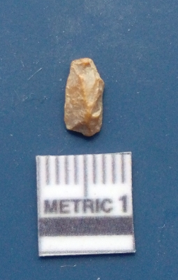 | Description / विवरण | It is a blade fragment. The ridges are clearly seen on the dorsal surface while the ventral surface is plain. It is brownish in colour. The sides are sharp and retouched. |