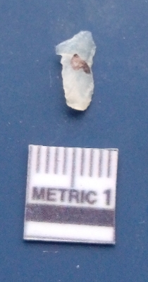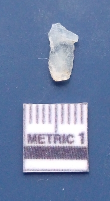 | Description / विवरण | It is a blade fragment. The ridges are clearly seen on the dorsal surface while the ventral surface is plain. It is white in colour. The sides are sharp and retouched. |