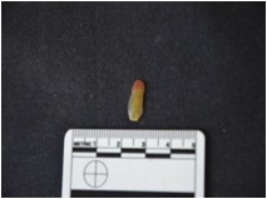 | Description / विवरण | Blade, made on chalcedony, bulb of percussion on the ventral surface, ridge on the dorsal surface, sharp working edges. |