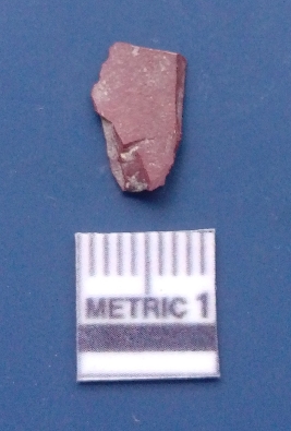 | Description / विवरण | It is a blade fragment. The ridges are clearly seen on the dorsal surface while the ventral surface is plain. It is brownish in colour. The sides are sharp and retouched. |