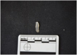 | Description / विवरण | Blade, made on chalcedony bulb of percussion on the ventral surface, prepared platform, ridges on the dorsal surface, sharp working edges. |