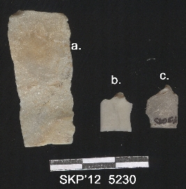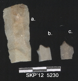 | Description / विवरण | This is a chart blade with broken ends of triangular cross section, flaked ridges and denticalated lateral margins. |
