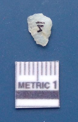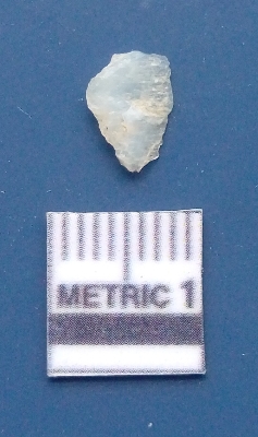 | Description / विवरण | It is a blade fragment. The ridges are clearly seen on the dorsal surface while the ventral surface is plain. It is white in colour. The sides are sharp and retouched. |