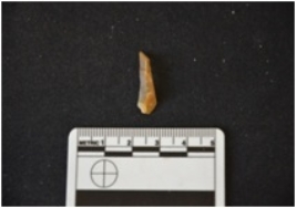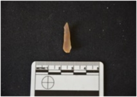 | Description / विवरण | Blade made on chert, prepared platform, bulb of percussion on the ventral surface, Ridges on the dorsal surface, sharp working edges. |