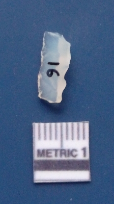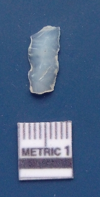 | Description / विवरण | It is a blade fragment. The ridges are clearly seen on the dorsal surface while the ventral surface is plain. It is white in colour. The sides are sharp and retouched. It is triangular in cross - section. |