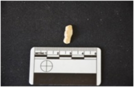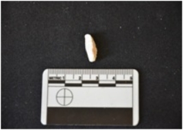 | Description / विवरण | Blade made on chert, bulb of percussion on the ventral surface, ridge on dorsal surface, use-wear marks along at one edge. |
