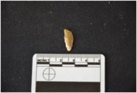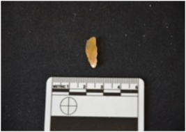 | Description / विवरण | Blade, made on chalcedony, Ridges on the dorsal surface, bulb of percussion on the ventral surface, use-wear marks along at both the edges. |