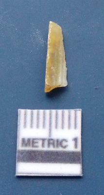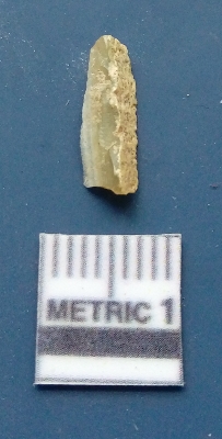 | Description / विवरण | It is a blade fragment, the lateral sides are sharp, the ridges are clearly seen on the dorsal surface and the ventral surface is plain. |