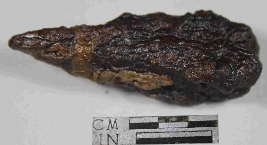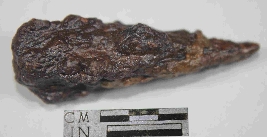 | Description / विवरण | An arrow head which is conical in shape. Its colour is dark brown and its surface is rough. It is highly corroded. |