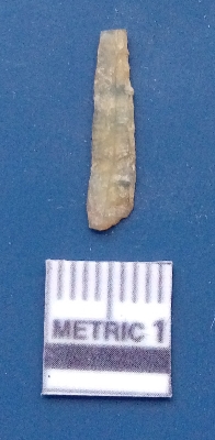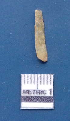 | Description / विवरण | The chalcedony flake is pale in color and translucent in appearance. The piece has s harp flaked ends and a bulbous end due to flaking. The flake has a crypto-crystalline silica matrix. |