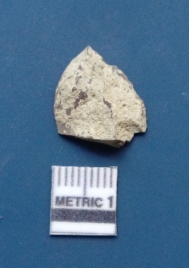 | Description / विवरण | The quartz flake has irregular fracture pattern and sharp flaked edges as a result of lithic knapping activity. The piece is pale, with surface flake scars and a bulbous end. |