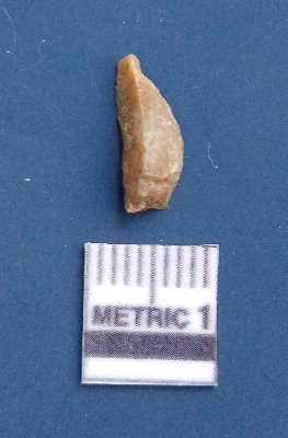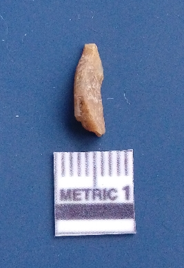 | Description / विवरण | The chert flake has a clear striking platform and ripple marks on the surface as a result of flaking. The piece is smooth, with regular fracture pattern and matt finish on the surface with a prominent bulb of percussion nd sharp flaked edges. |