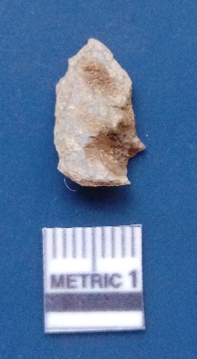 | Description / विवरण | The chert flake has a clear striking platform and ripple marks on the surface as a result of flaking. The piece is smooth, with regular fracture pattern and matt finish on the surface with a prominent bulb of percussion nd sharp flaked edges. |