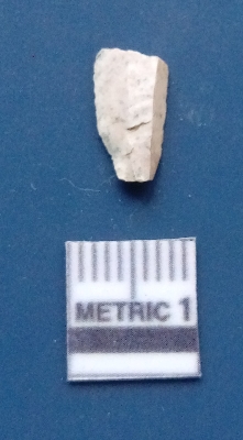 | Description / विवरण | The chert flake has a clear striking platform and ripple marks on the surface as a result of flaking. The piece is smooth, with regular fracture pattern and matt finish on the surface with a prominent bulb of percussion nd sharp flaked edges. |