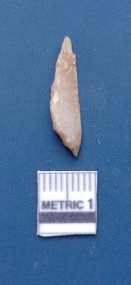 | Description / विवरण | The lunate piece is C circular in shape and cryptocrystalline in nature. One side of the lunate has flakes scars and sharp edge due to flaking, while the other end is stubby. The lunate was hafted for use during the Mesolithic and harappan type. |