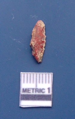 | Description / विवरण | The lunate piece is C circular in shape and cryptocrystalline in nature. One side of the lunate has flakes scars and sharp edge due to flaking, while the other end is stubby. The lunate was hafted for use during the Mesolithic and harappan type. |