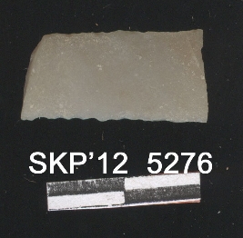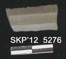 | Description / विवरण | This is a fragment of chert blade with broken ends with trapezium cross section. Flaked and retouched. Denticulate on one side lateral margins. |