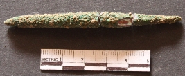 | Description / विवरण | Copper object. It is greenish in color. It is long and pointed at one end. It is circular in cross section. |