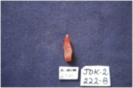 | Description / विवरण | Point, made on Chert, diffused bulb on ventral side, prepared platform along proximal end, use-wear marks along the tip. |