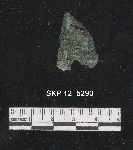 | Description / विवरण | Copper object, it is corroded and green in color, it is pointed at one end, it can be a arrow head. |
