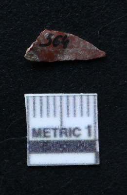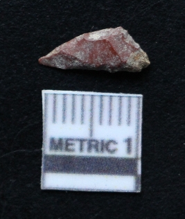 | Description / विवरण | It is an obtuse triangular chert blade has lateral margins with sharp edges on the surface which has been retouched forming a pointed edges. |