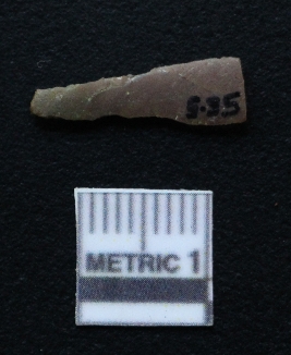 | Description / विवरण | It is a blade fragment with two sharp parallel side lateral margin with working edge, bulb of percussion on ventral side with ripples on it, flake scars on the surface. |