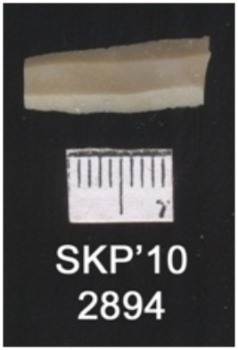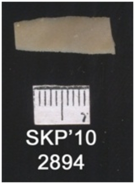 | Description / विवरण | Broken chert blade, it is rectangular in structure. The ridges can be clearly seen. It is trapezium in cross section. The ventral surface is plain. |