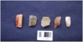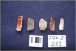 | Description / विवरण | Fragments of Blades, made on Chalcedony and Chert, prepared platform along proximal end, diffused bulb on ventral side whereas prominent bulb on one blade, ridge on dorsal side. |