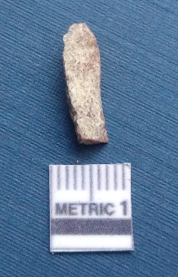 | Description / विवरण | It is a blade fragment with two sharp parallel side lateral margin with working edge, bulb of percussion on ventral side with ripples on it, flake scars on the surface. |