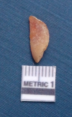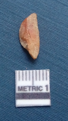 | Description / विवरण | It is a blade fragment with two sharp parallel side lateral margin with working edge, bulb of percussion on ventral side with ripples on it, flake scars on the surface. |