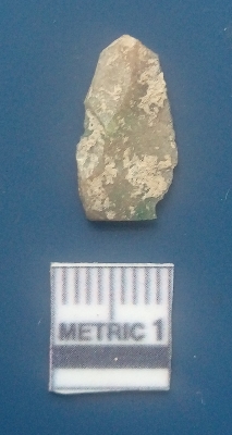| Description / विवरण | It is a blade fragment. The sides are sharp and retouched. It is reyish in colour. The striking platform and the bulb of percussion is clearly visible. The flake scars are clearly seen on the dorsal surface while the ventral surface is plain. |